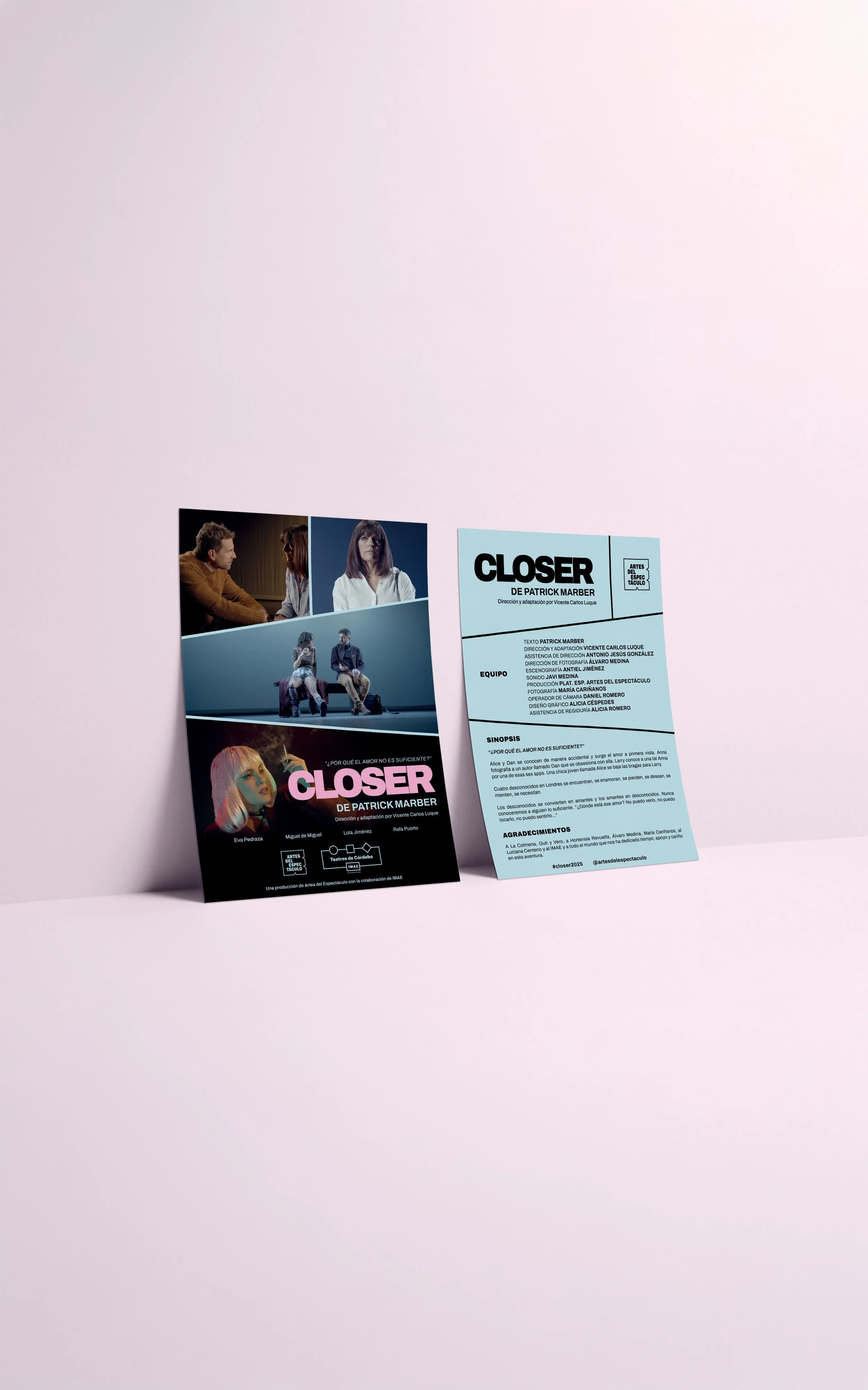 20 años después de la icónica película CLOSER, que protagonizaron Natalie Portman, Julia Roberts, Jude Law y Clive Owen, Artes del Espectáculo ha comenzado una gira por España con la adaptación del texto de su reconocido autor inglés Patrick Marber, a una versión que combina la actuación sobre el escenario con el cine en vivo.